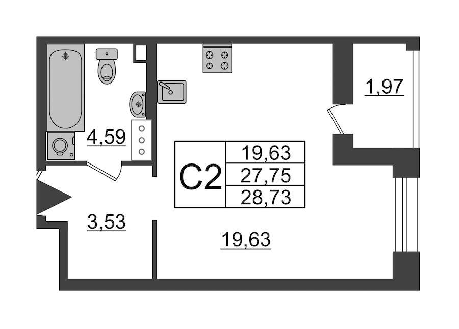 Квартира-студия на 10-ом этаже 29,8 кв.м