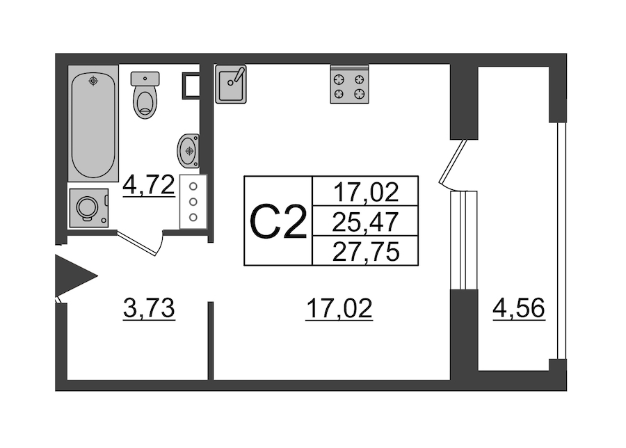 • Площадь28,7 м2