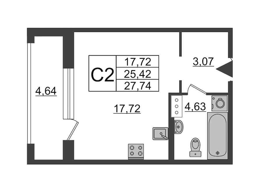 Квартира-студия на 10-ом этаже 29,1 кв.м