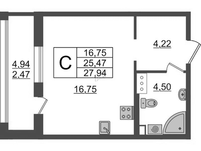 Квартира-студия на 8-ом этаже 27,94 кв.м