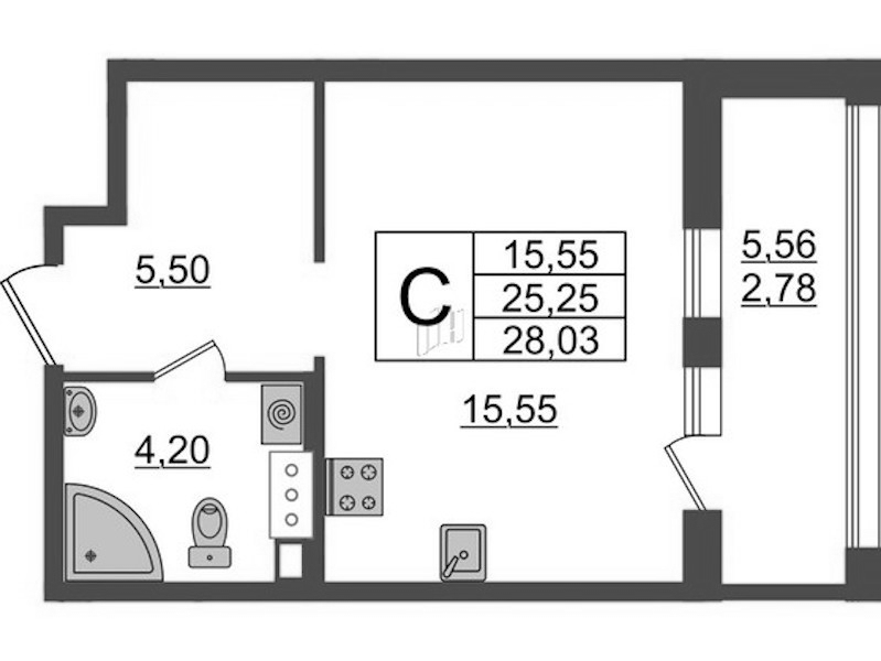 - Площадь28,03 м2