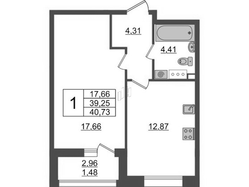 • Площадь40,73 м2
