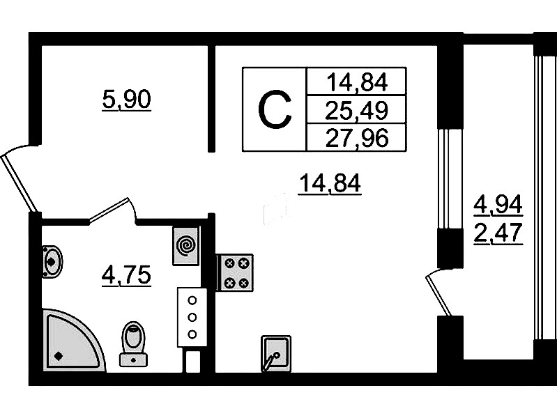 Квартира-студия на 7-ом этаже 27,88 кв.м