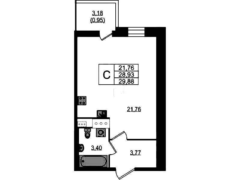 Квартира-студия на 8-ом этаже 29,7 кв.м