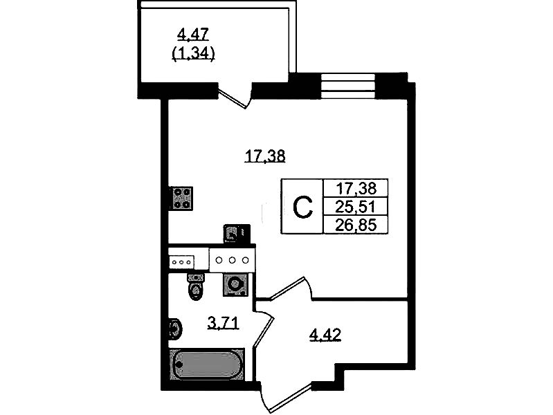 - Площадь26,7 м2
