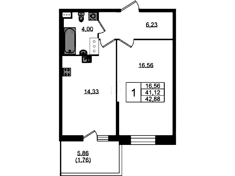 Однокомнатная квартира на 3-ем этаже 42,5 кв.м