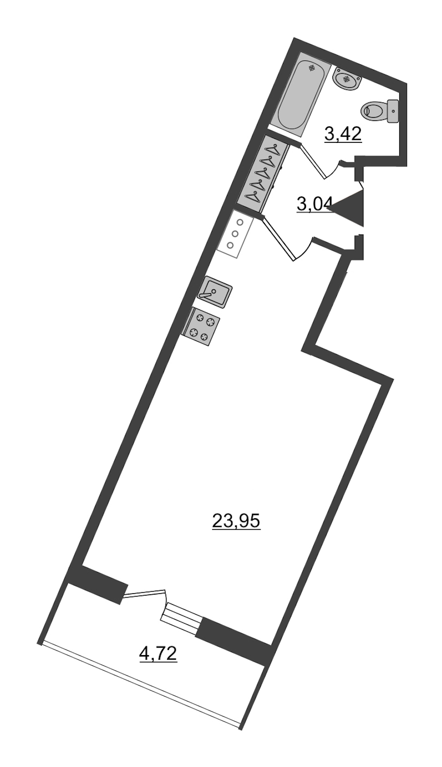 Квартира-студия на 13-ом этаже 32,77 кв.м