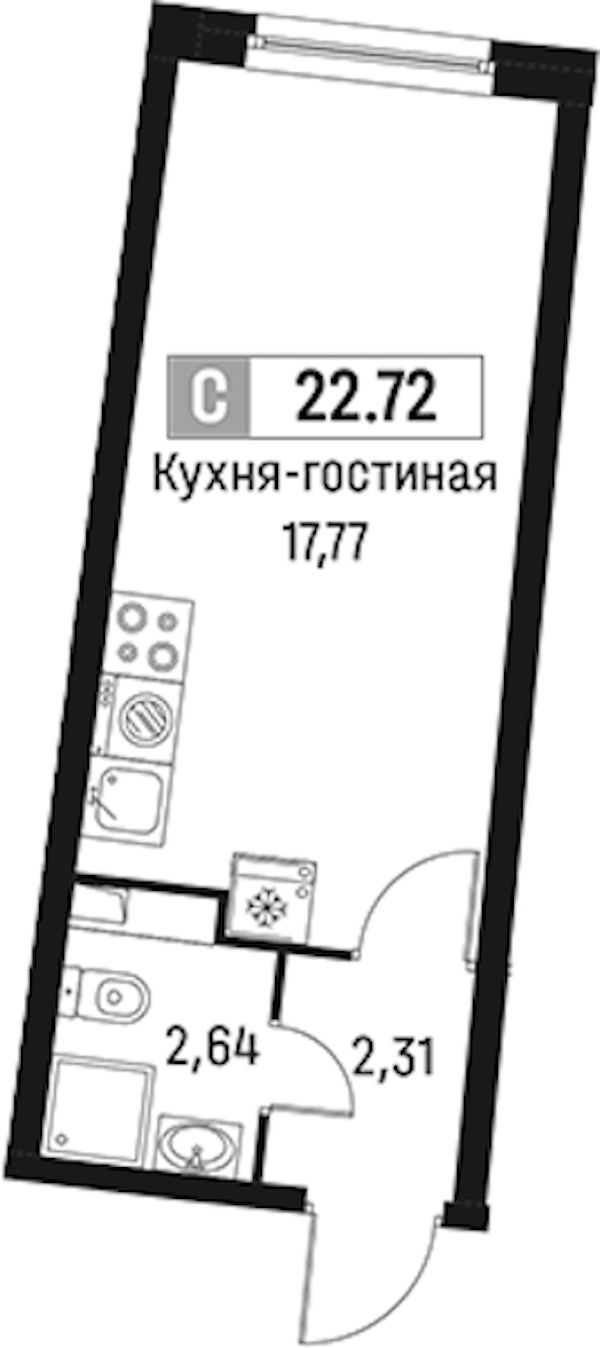 Квартира-студия на 2-ом этаже 22,72 кв.м