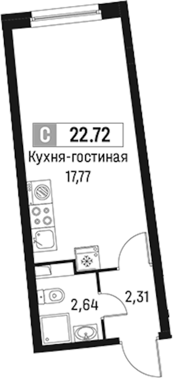 Квартира-студия на 2-ом этаже 22,72 кв.м