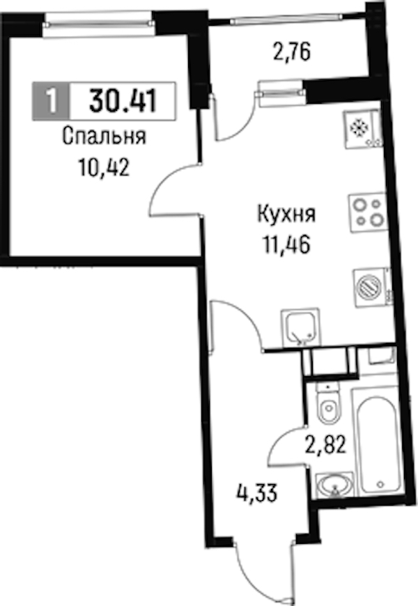 • Площадь30,41 м2