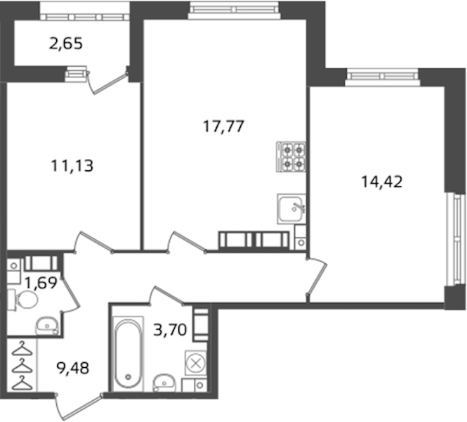- Площадь кухни17,77 м2
