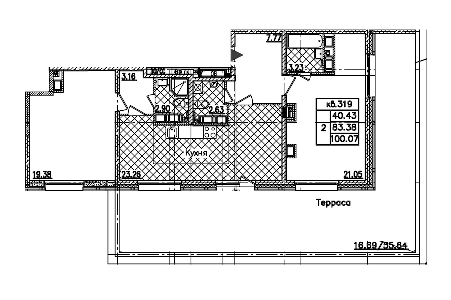 • Площадь кухни23,26 м2