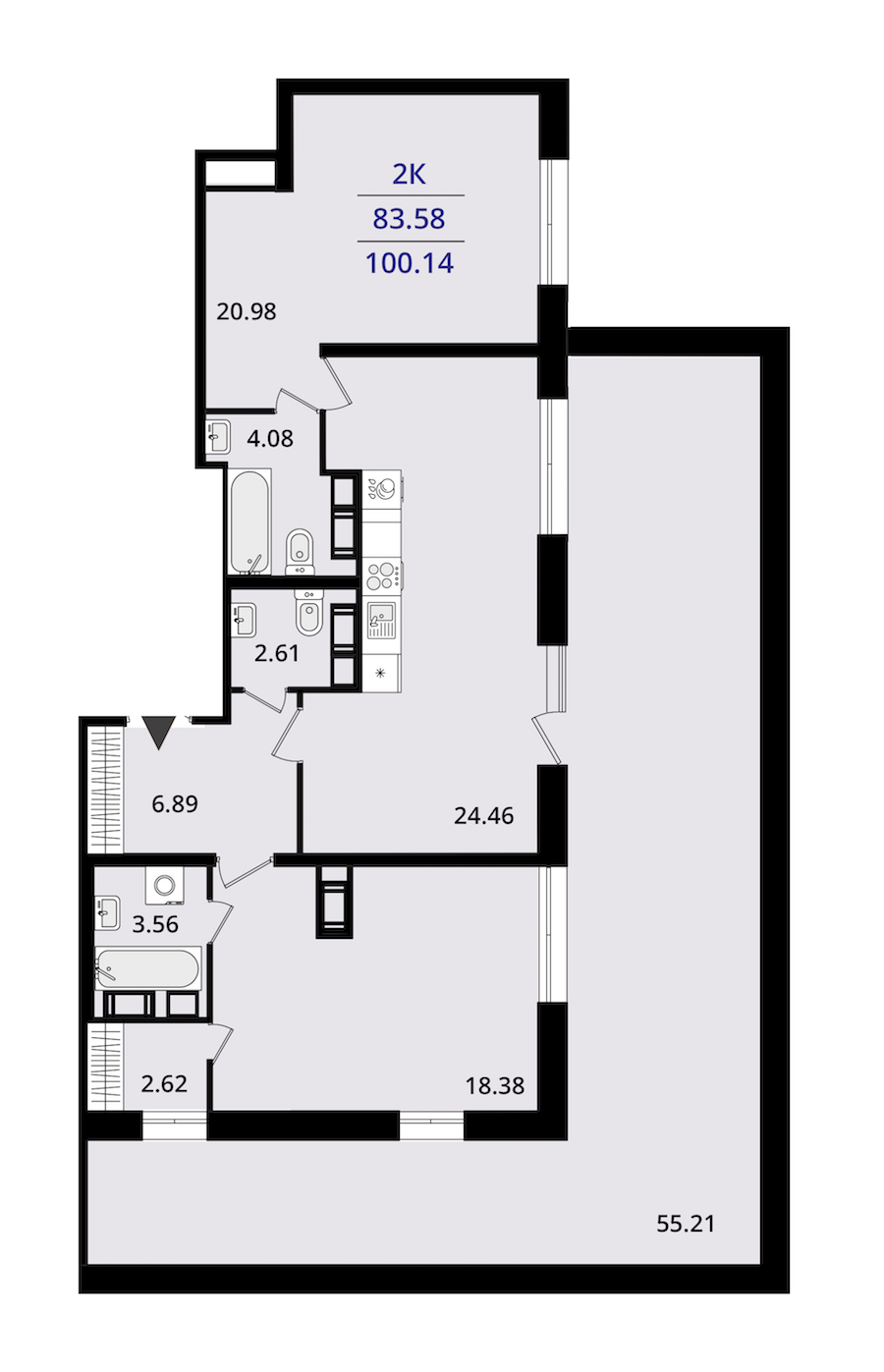 Двухкомнатная квартира на 16-ом этаже 100,14 кв.м