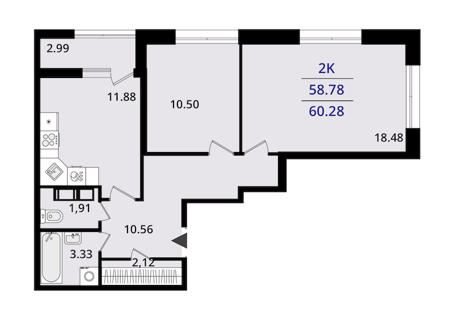 • Площадь60,28 м2