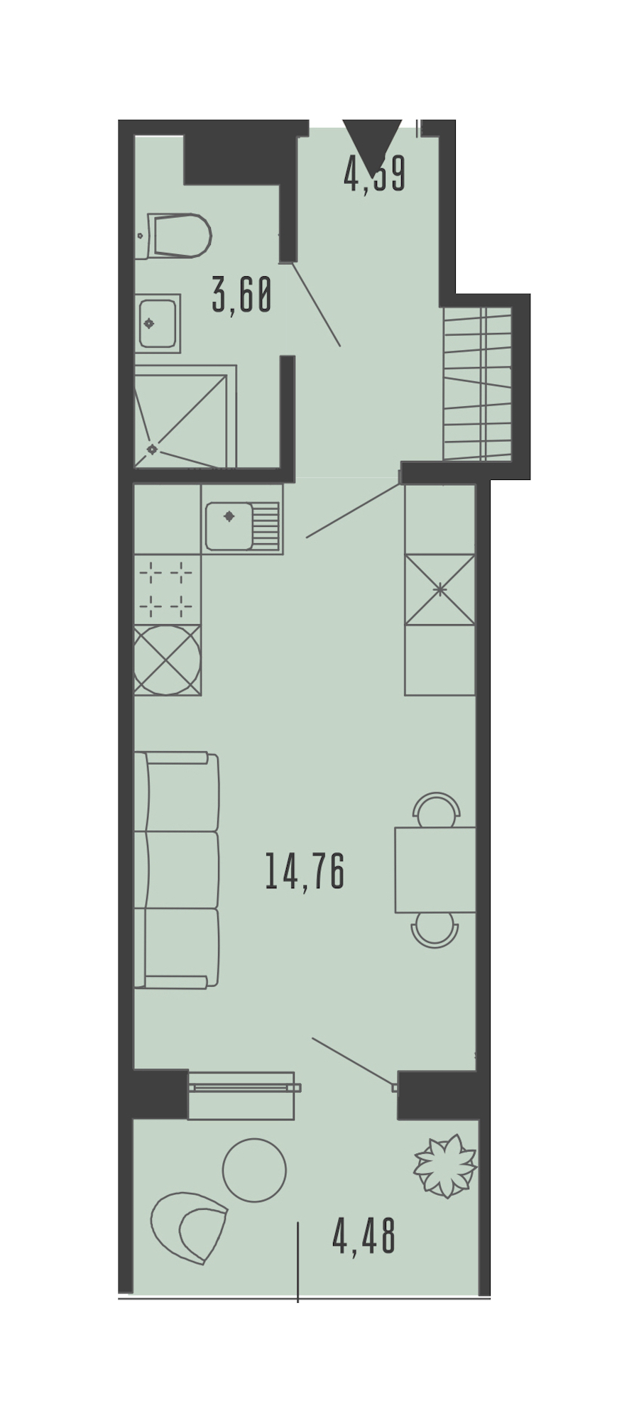 Квартира-студия на 2-ом этаже 24,09 кв.м