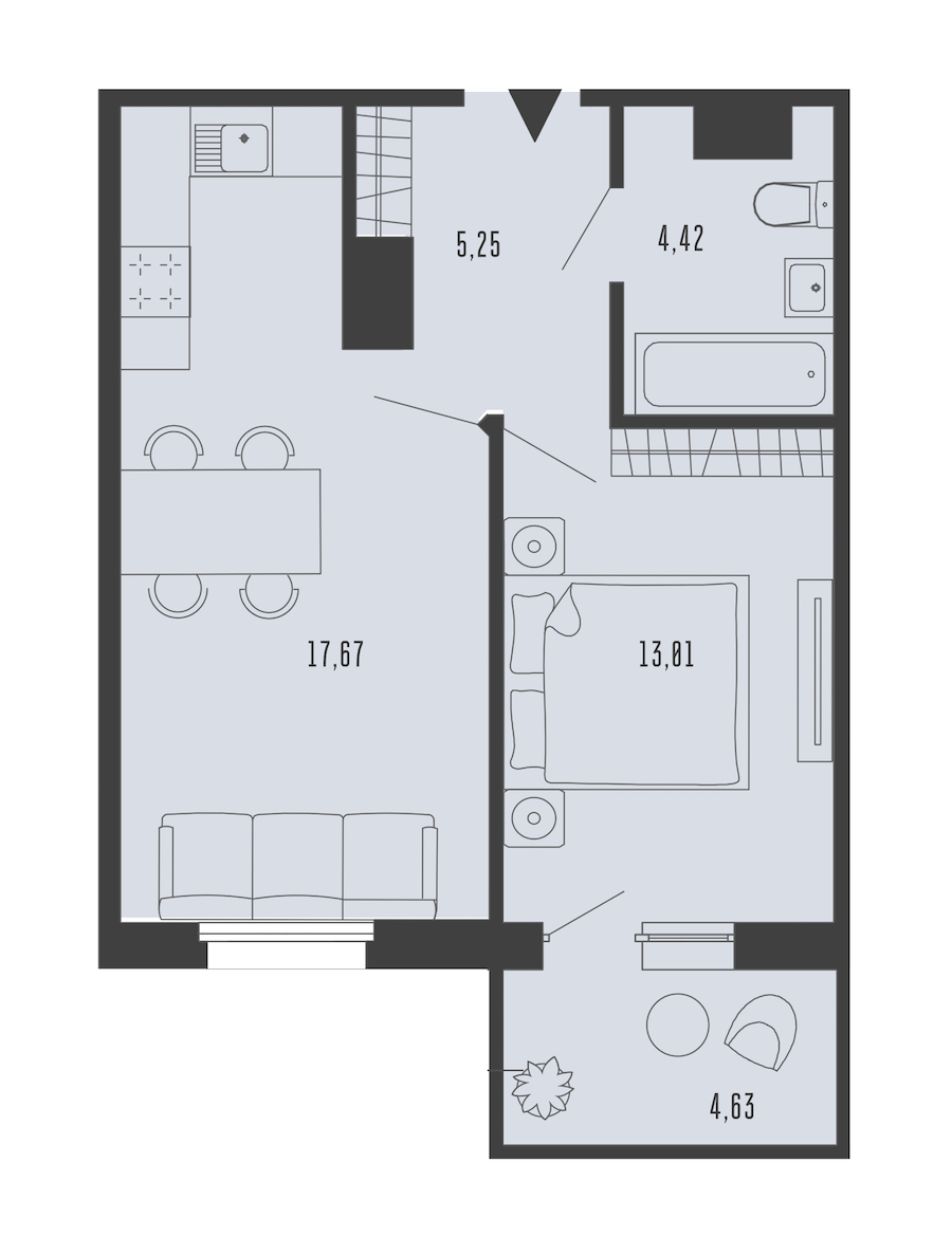 - Площадь41,74 м2