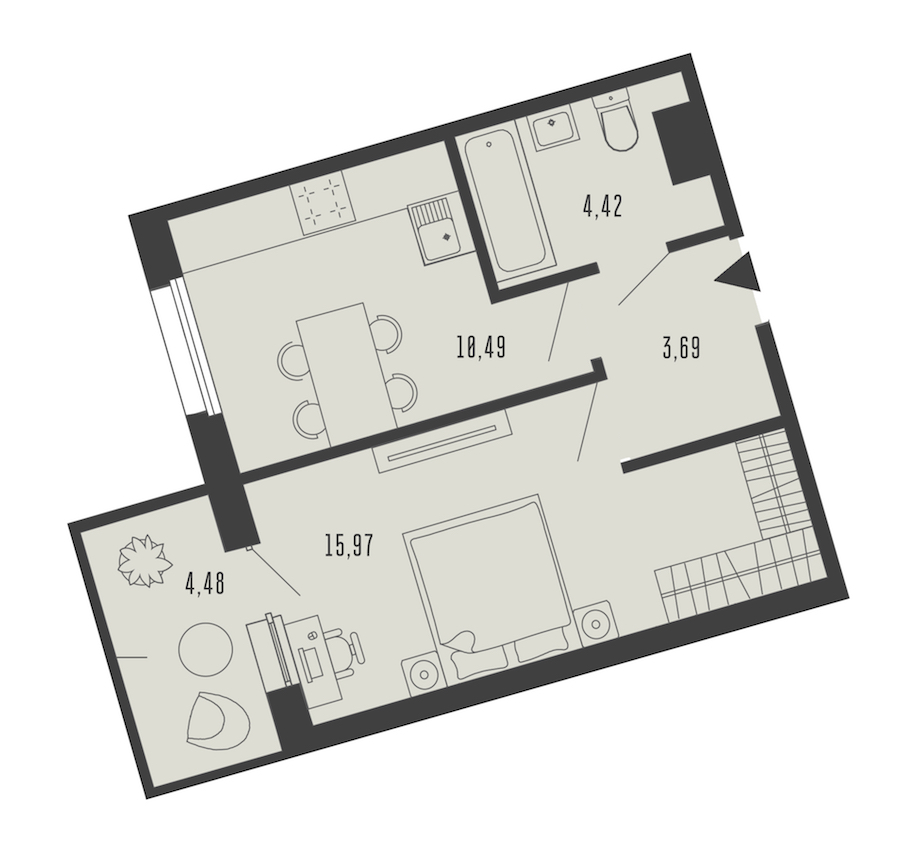 - Площадь кухни10,49 м2