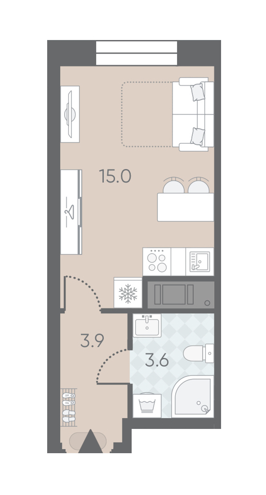 - Площадь22,5 м2
