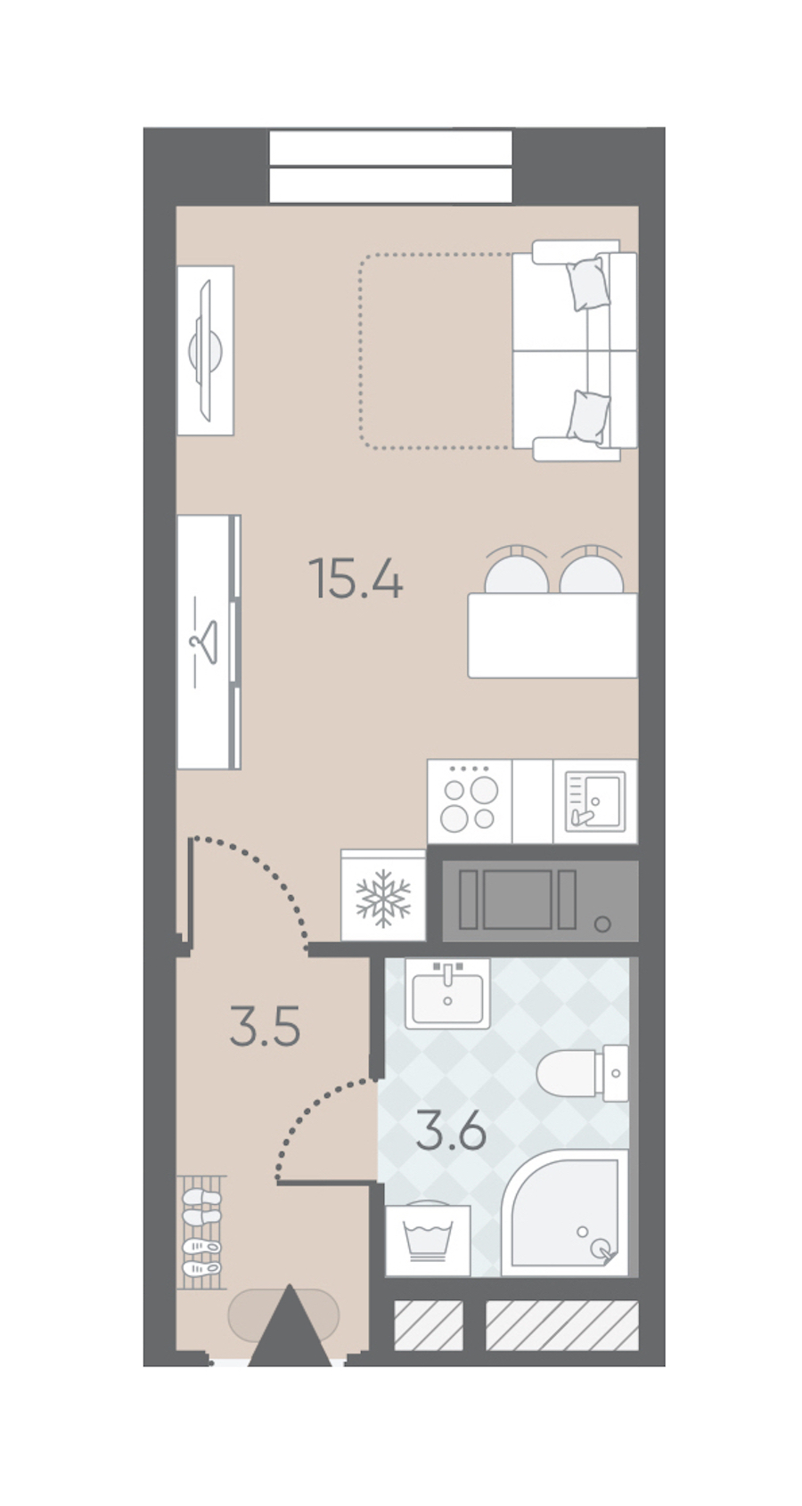Квартира-студия на 12-ом этаже 22,5 кв.м