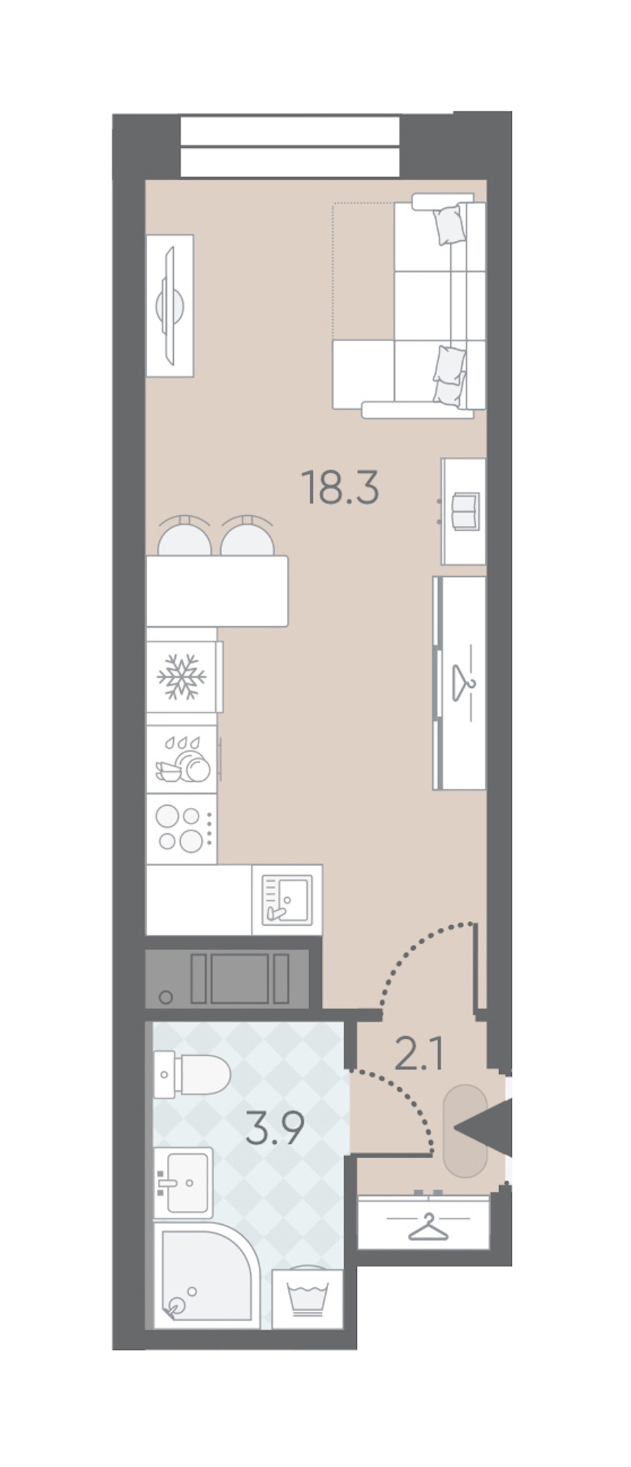 - Площадь24,3 м2
