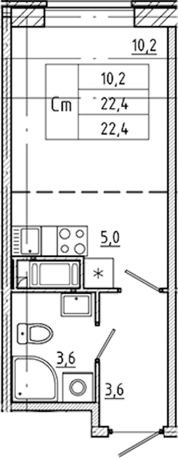 - Площадь22,4 м2