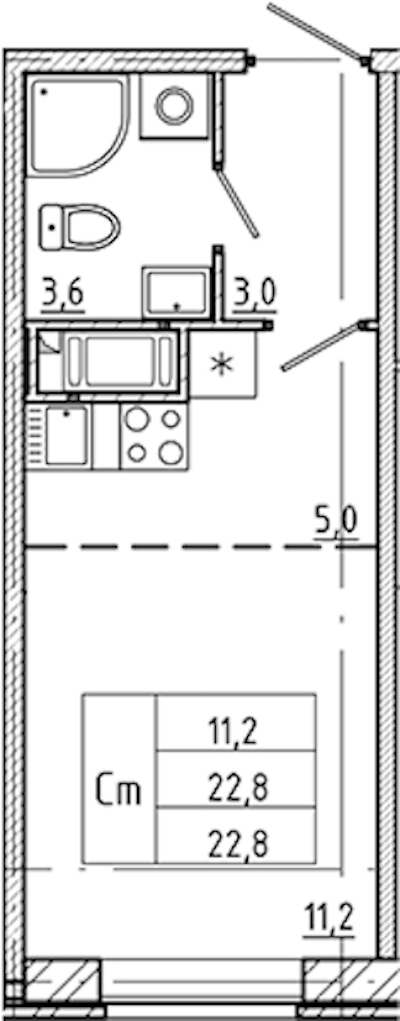 • Площадь22,8 м2