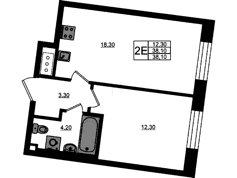 Однокомнатная квартира на 3-ем этаже 38,1 кв.м