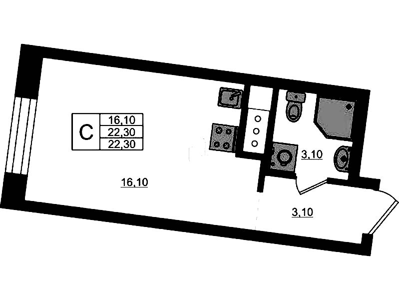 • Площадь22,3 м2