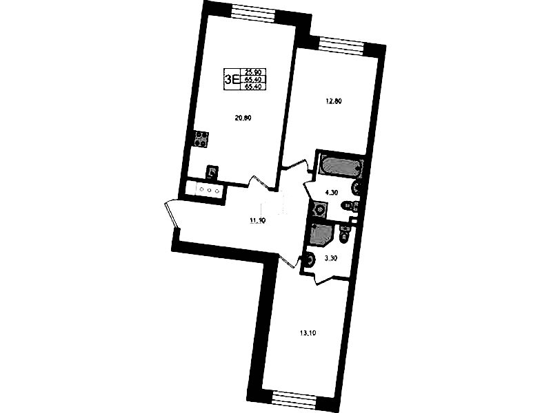 - Площадь65,4 м2