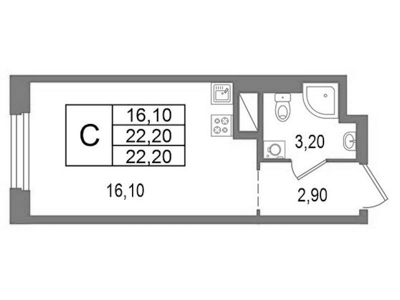 - Площадь22,2 м2