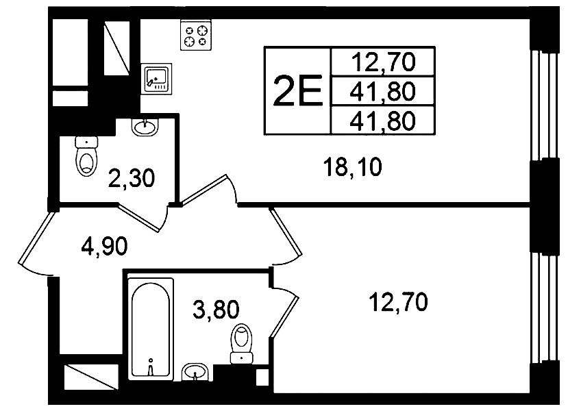 Однокомнатная квартира на 9-ом этаже 41,8 кв.м