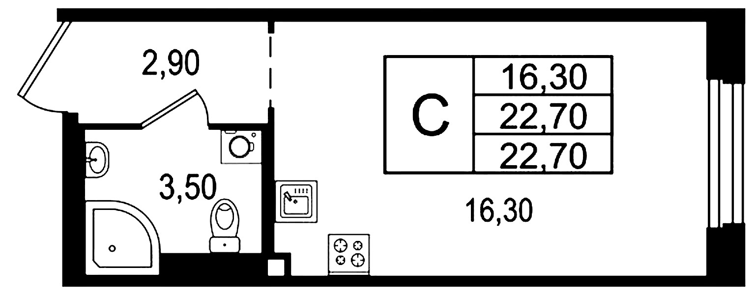 Квартира-студия на 3-ем этаже 22,7 кв.м