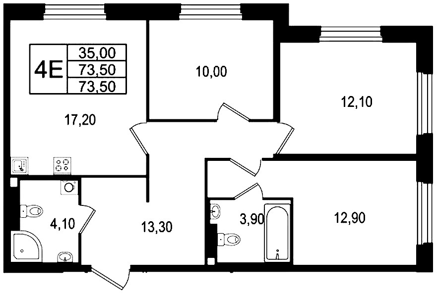 Трёхкомнатная квартира на 3-ем этаже 73,5 кв.м