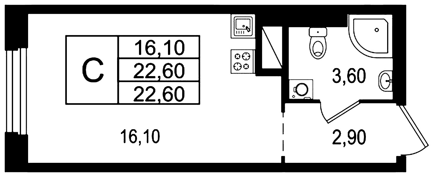 Квартира-студия на 6-ом этаже 22,6 кв.м