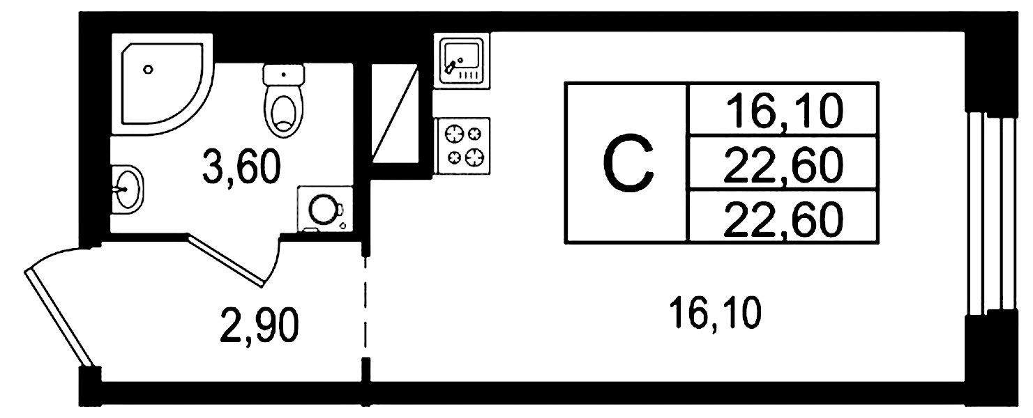 • Площадь22,6 м2