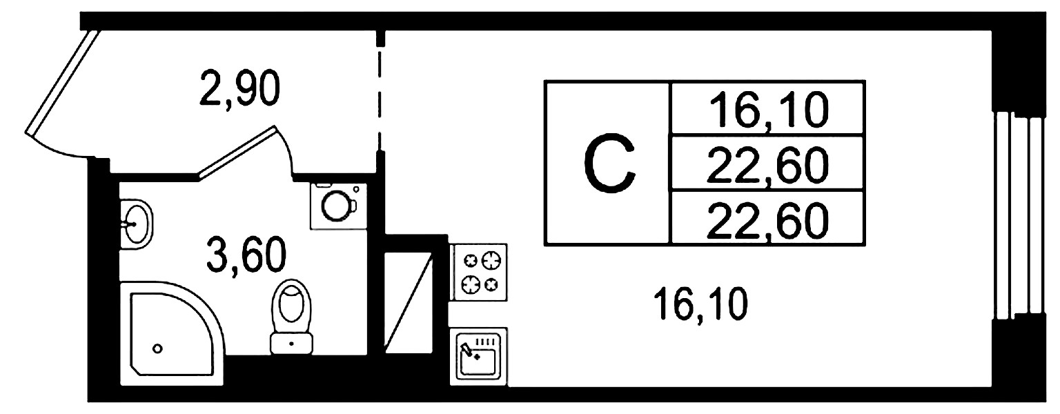 Квартира-студия на 8-ом этаже 22,6 кв.м