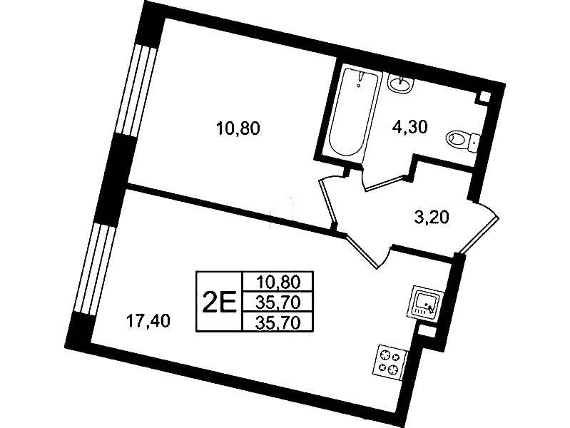 - Площадь35,7 м2
