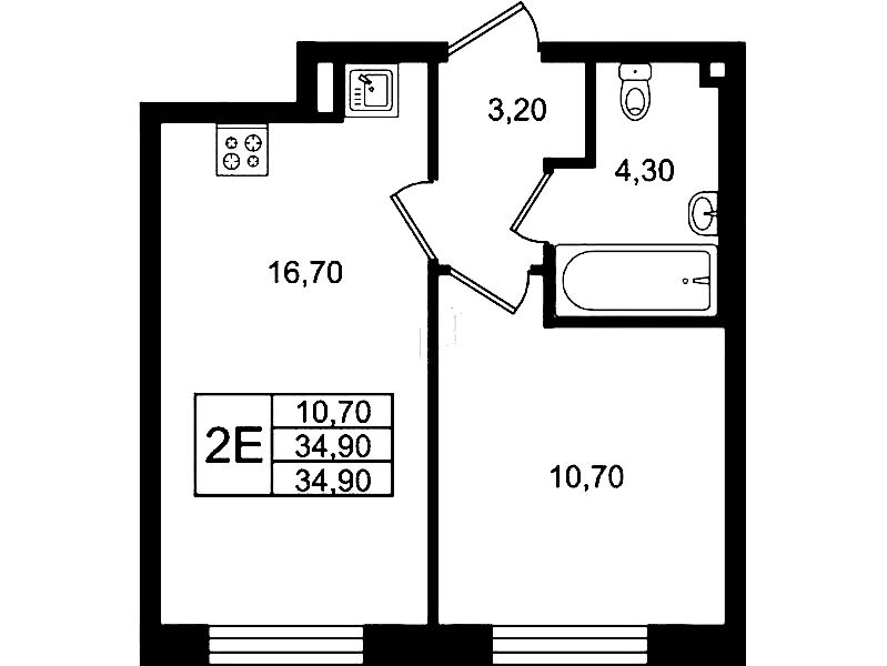 Однокомнатная квартира на 3-ем этаже 34,9 кв.м