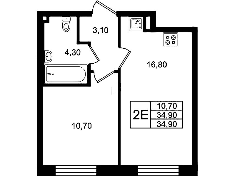 - Площадь34,9 м2