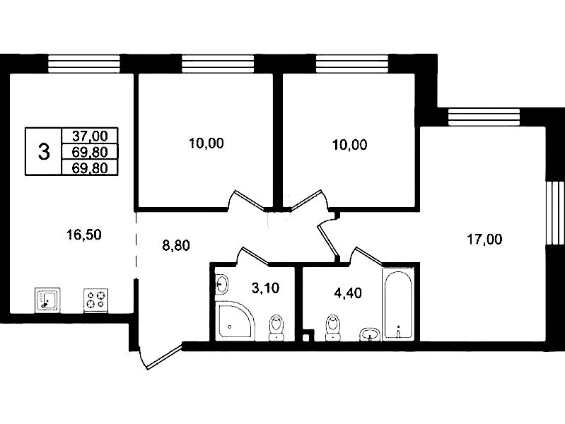 - Площадь69,8 м2
