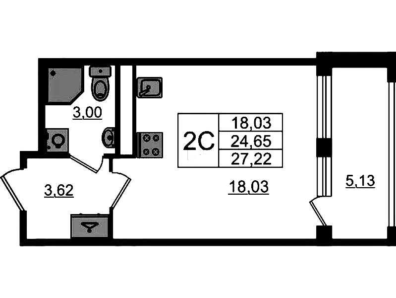 Квартира-студия на 2-ом этаже 25,58 кв.м