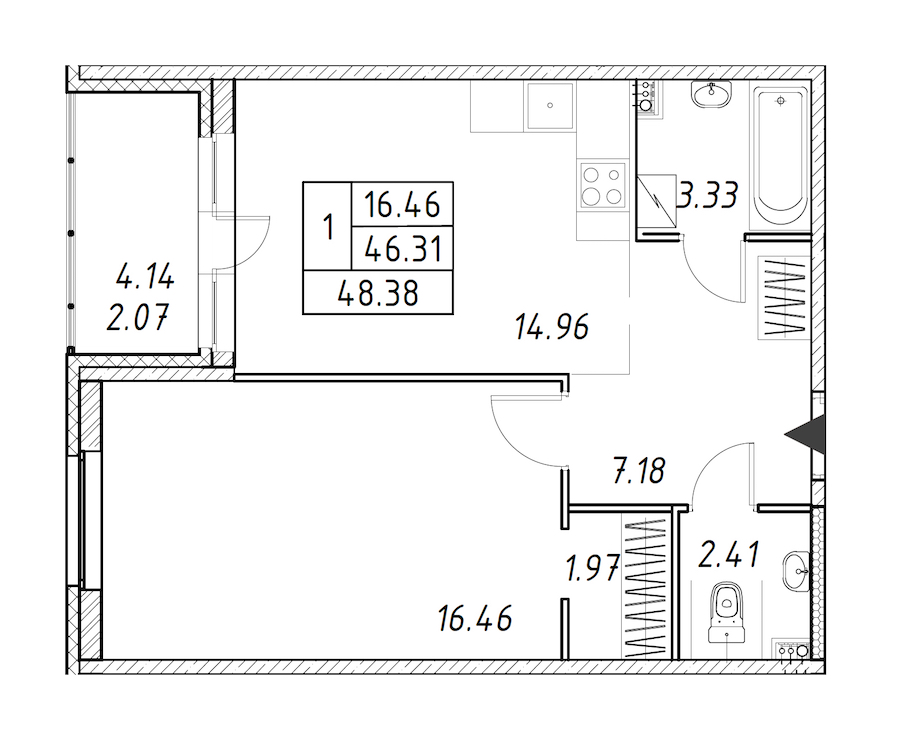 - Площадь48,38 м2