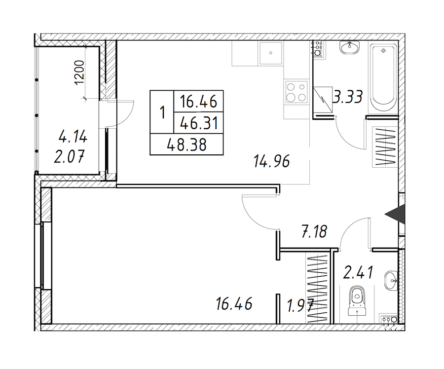 - Площадь48,38 м2