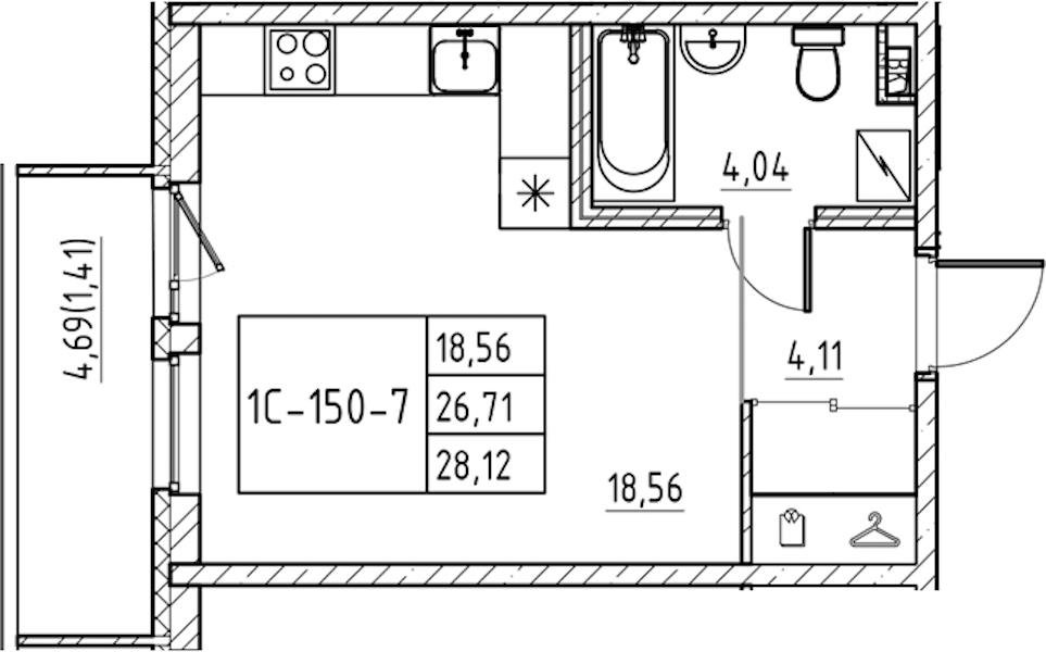 - Площадь28,12 м2