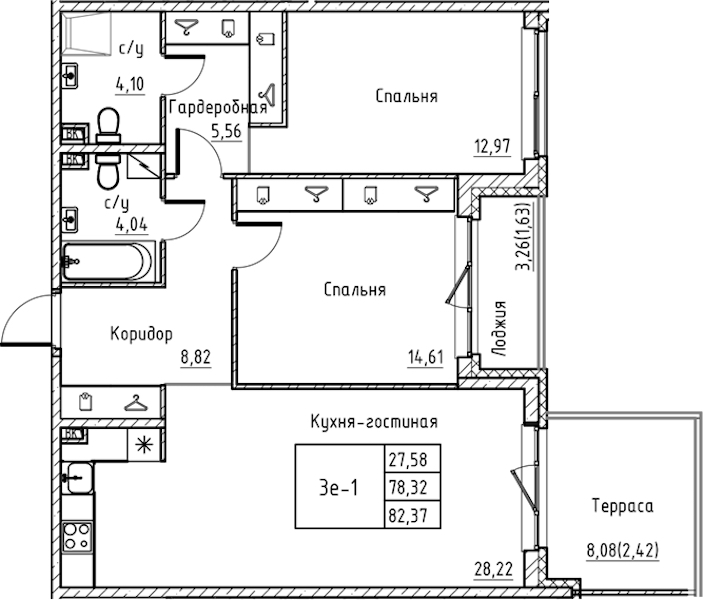 - Площадь82,37 м2