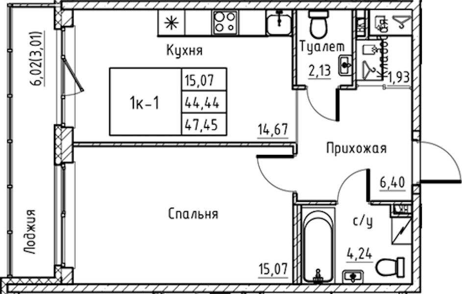 • Площадь кухни14,67 м2