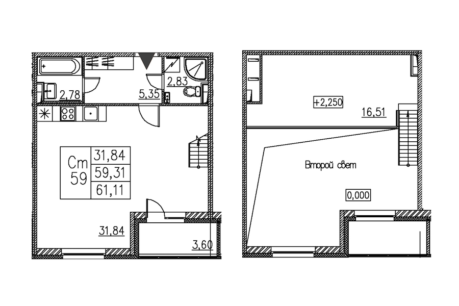 - Площадь61,11 м2