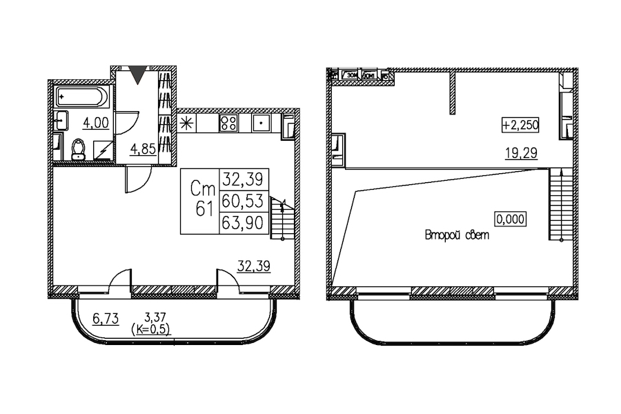Квартира-студия на 1-ом этаже 63,9 кв.м