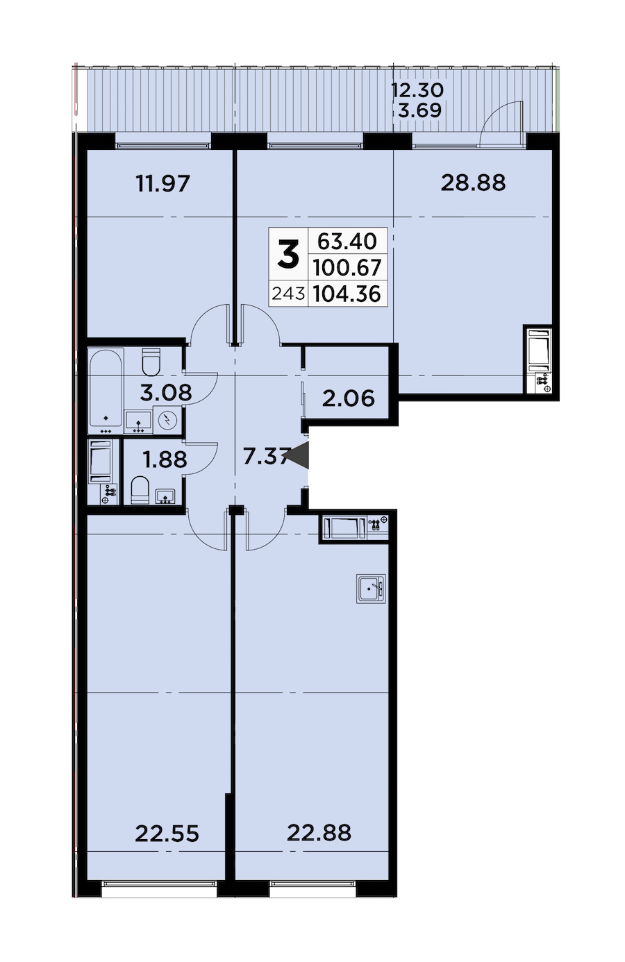 - Площадь104,36 м2