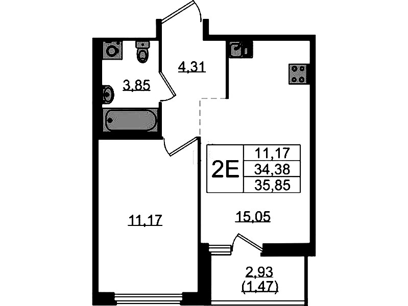 - Площадь35,85 м2